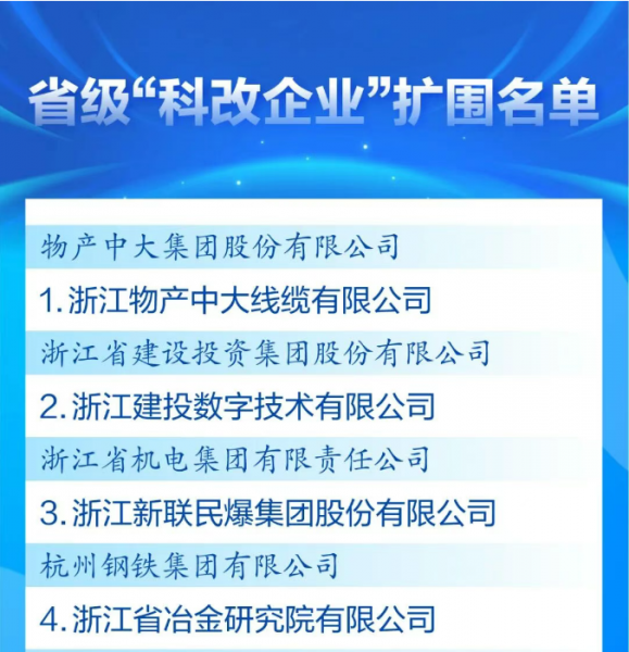 喜報!浙江省冶金研究院有限公司成功入圍省級“科改企業”