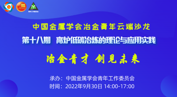 【高爐低碳冶煉的理論與應用實踐】中國金屬學會冶金青年云端沙龍第十八期-即將開啟